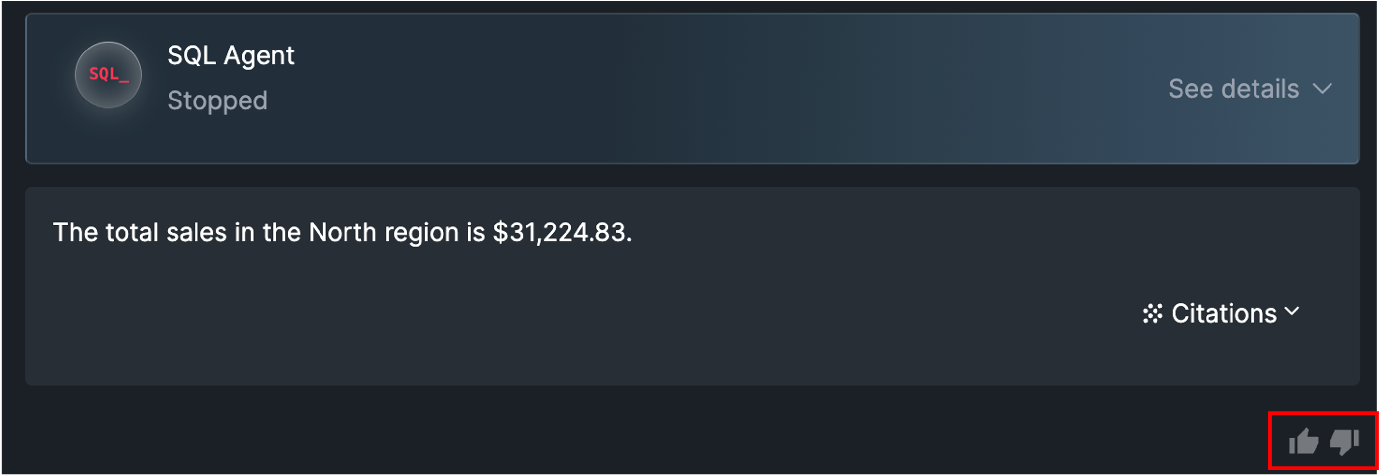Any feedback you provide is incorporated into the agent’s logic and may affect the responses seen by other users.