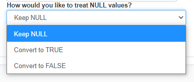 - Choose how you want the null values to be treated by clicking on the dropdown.