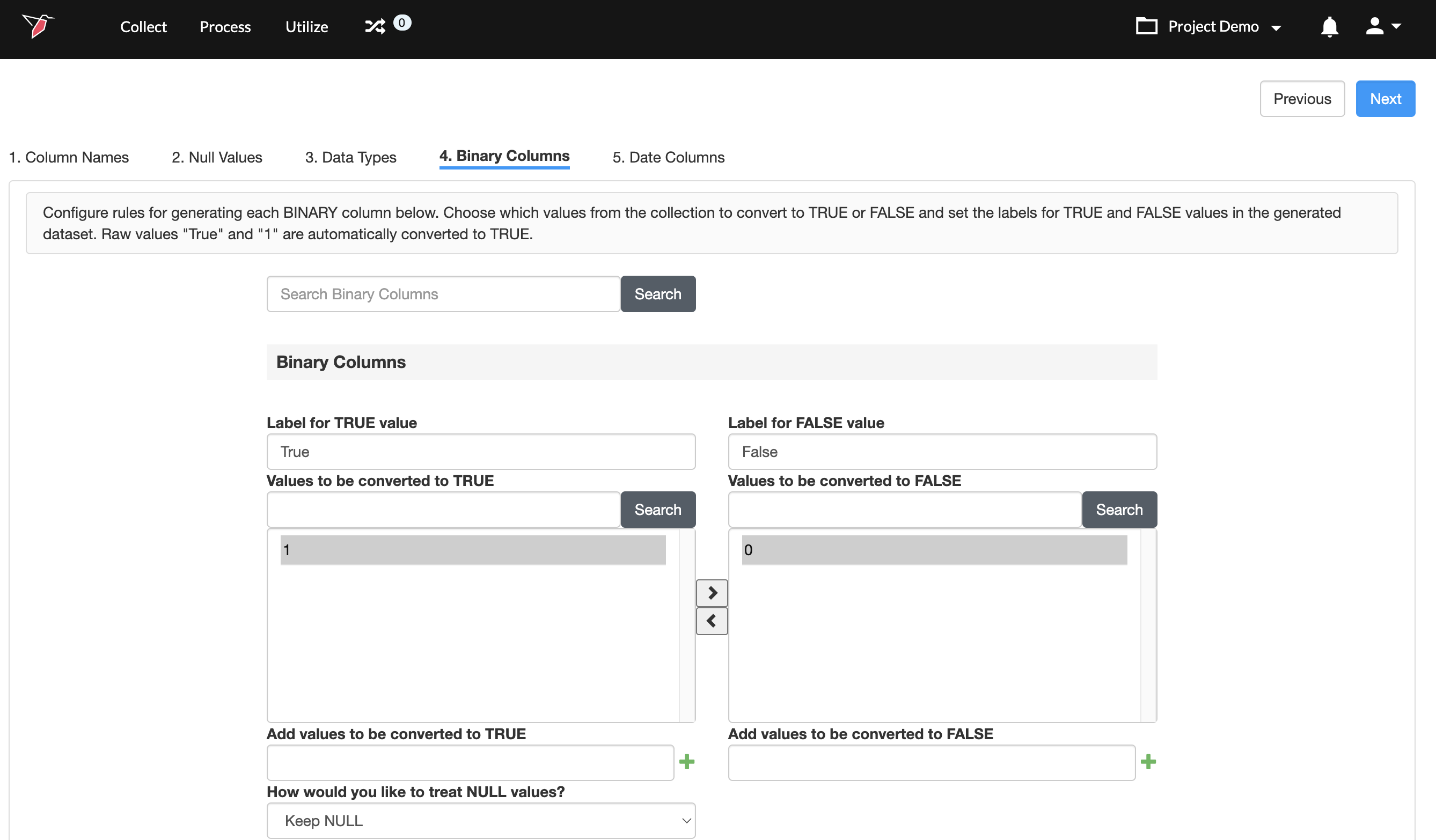 Step 4: Configuring Binary Columns
