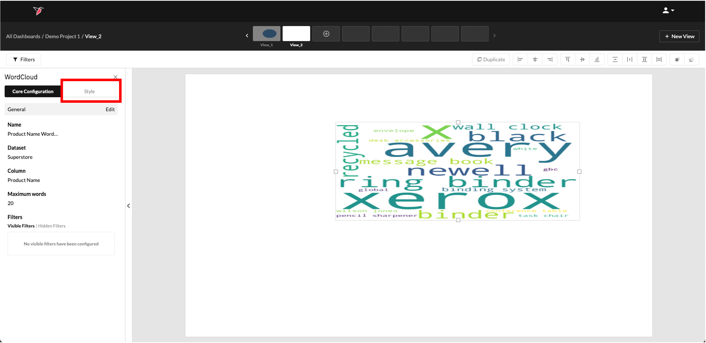 - Your WordCloud is now configured and will render on the page. To configure the Style of the WordCloud, first toggle to the Style section of the Actions panel.