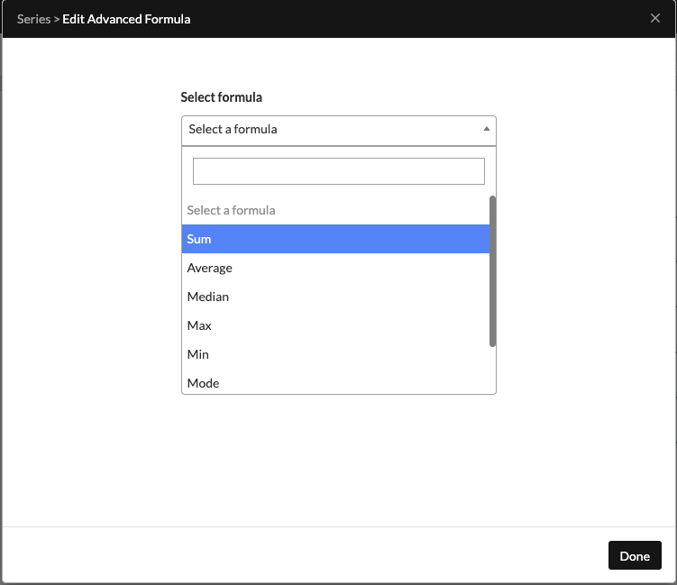 Advanced Formulas allow you to perform more complex data calculations within the configuration for a dashboard object. This is helpful in situations where your raw dataset doesn’t have the data you need for your calculation living in just one column or you need to apply specific logic before computing the output values that you will need to visualize.