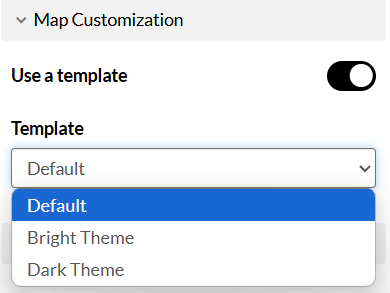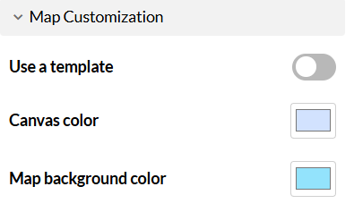 - In the Actions Panel click on Style, to configure a color for the canvas and map background. To use a pre-defined template, leave the Use a Template checkbox selected and choose between Default, Bright Theme, or Dark Theme in the drop-down.