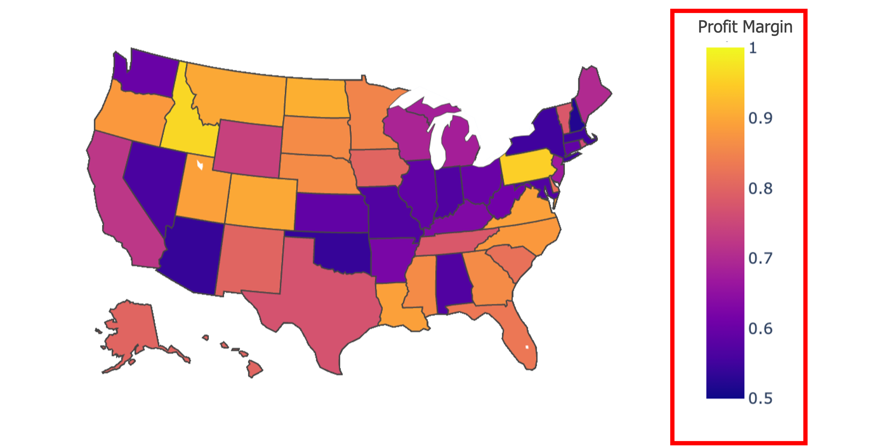 - If you would like to include a legend, expand the dropdown next to Legend and turn on the toggle next to Show legend . This will use the default colors of purple and yellow and show the results on a gradient of these two colors (see example output below).