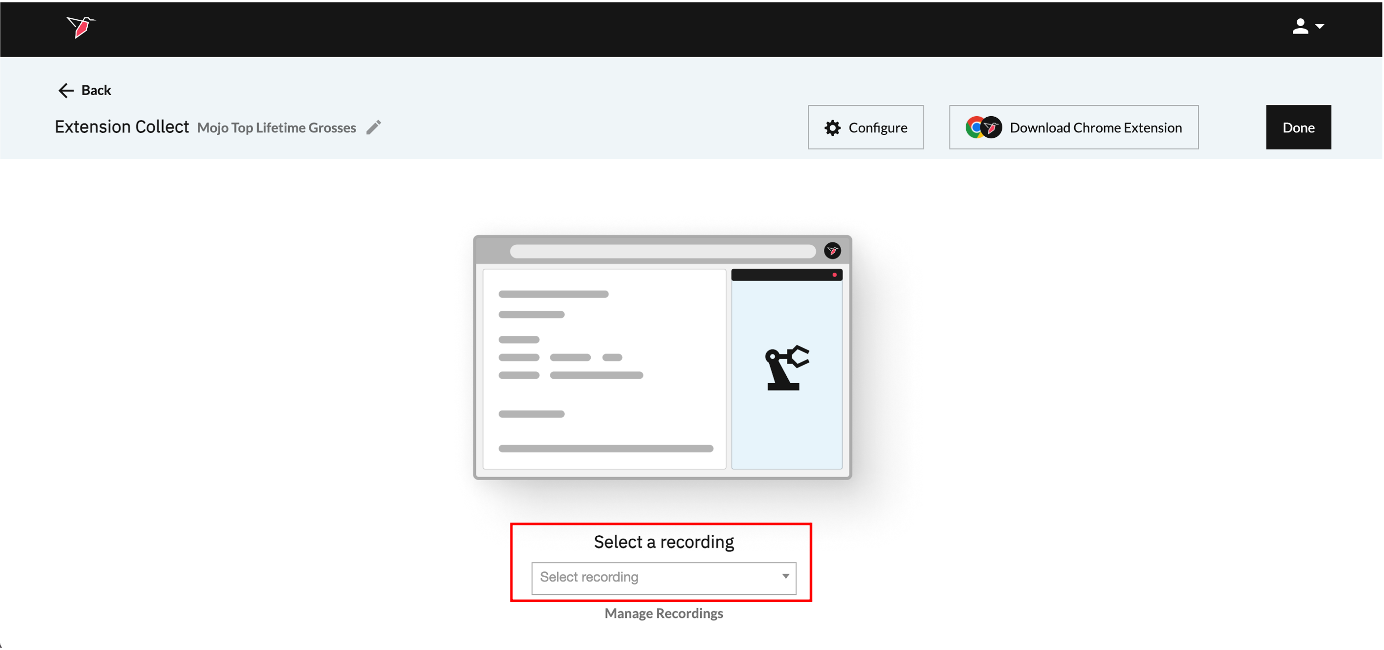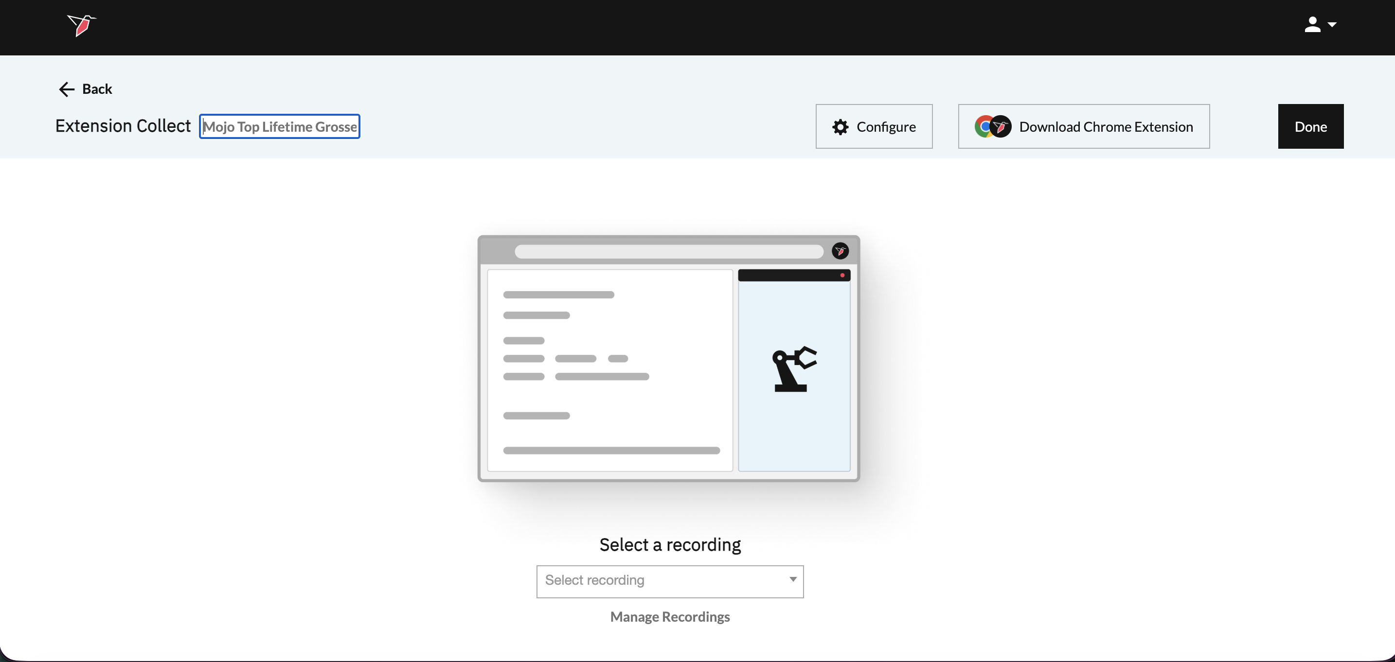 - Within the Extension Collect configuration screen, enter Mojo Top Lifetime Grosses in the Configuration Name box in the top-left to label your configuration.
