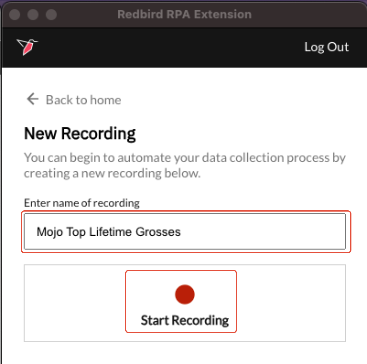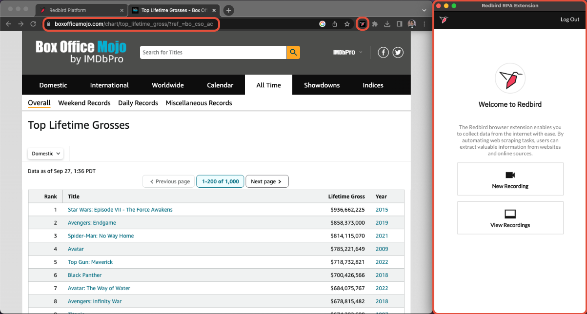 The objective of this tutorial is twofold: (1) Creating a recording via the Redbird Chrome Extension (RCE), (2) Creating a configuration within the Redbird platform to collect the data.