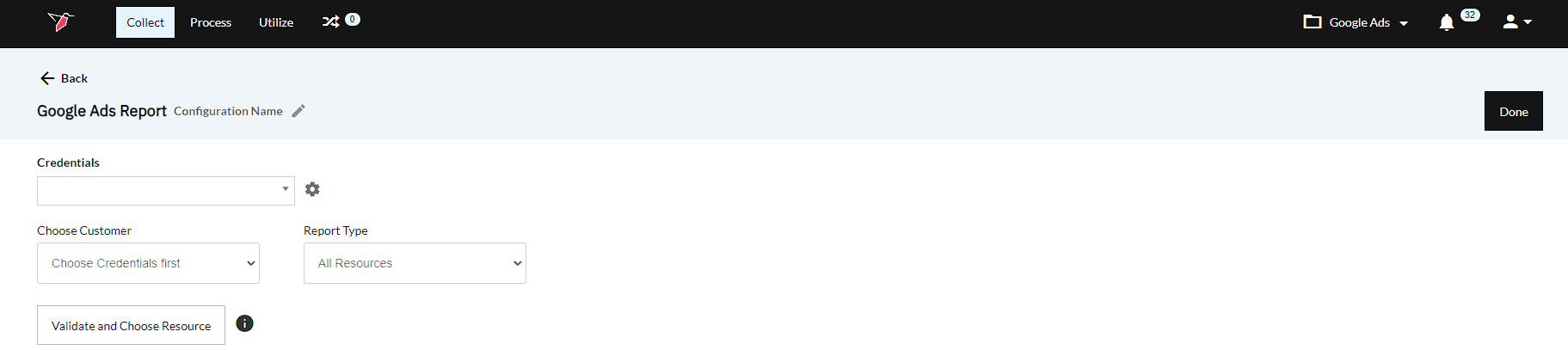 If you cannot see the Google Ads collection app in the left-side panel on the workflow canvas, refer to: Enabling Collection Apps Guide