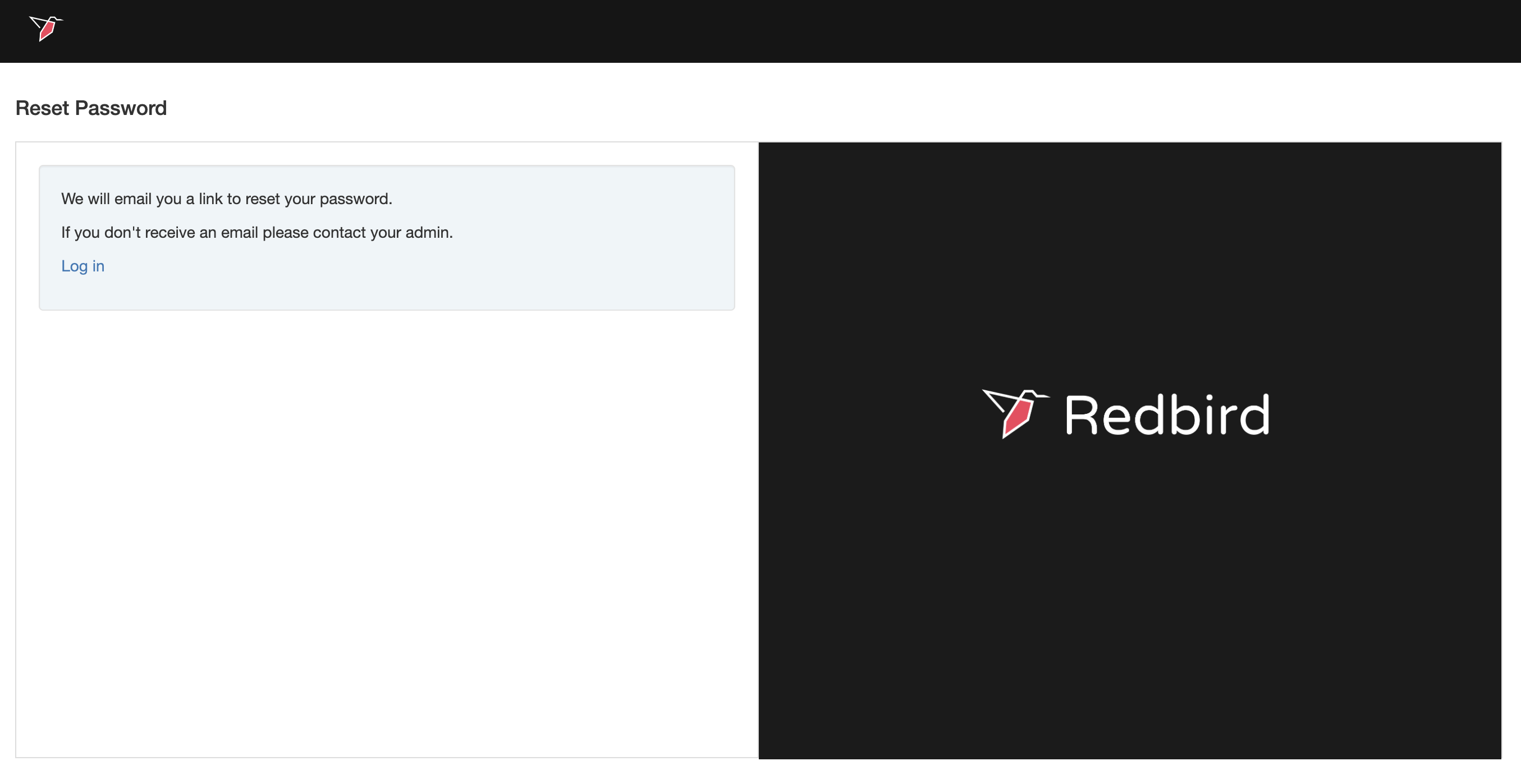 Note: The first time your account was created, you would have received a one-time login link via email. If you don’t have login credentials or can’t locate that email, please contact Redbird Support at [email protected] .
