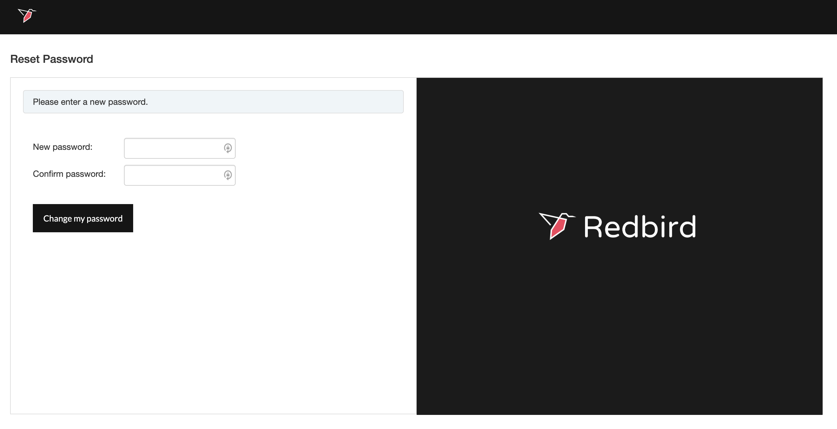 - Enter and confirm your new password.