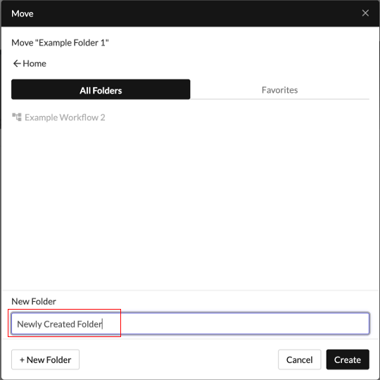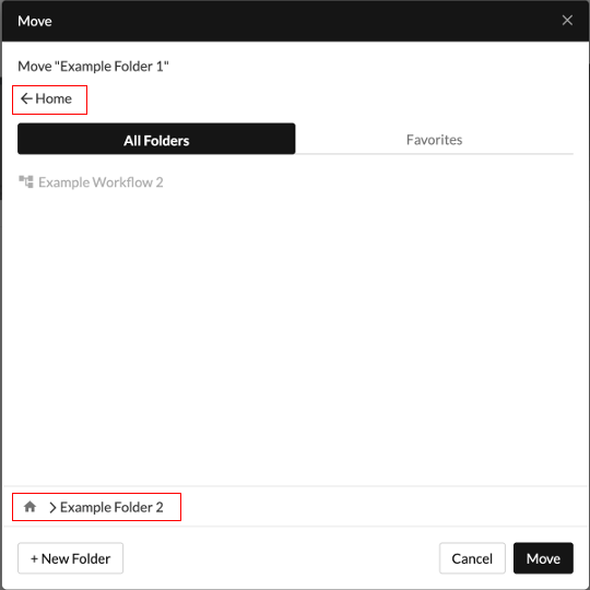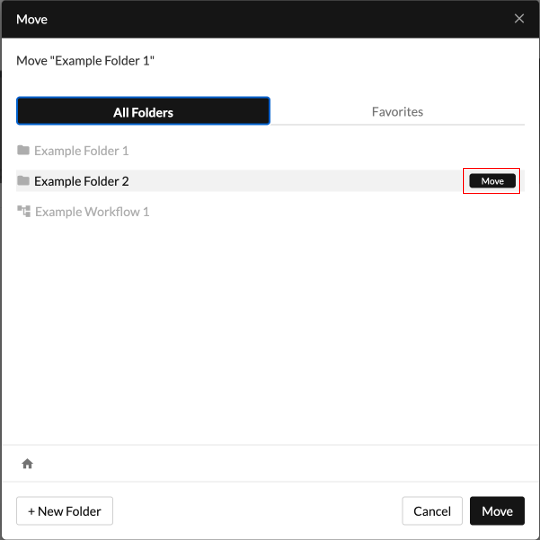 - If you want to create a new folder to move your item into, navigate to the destination folder and click + New Folder.
