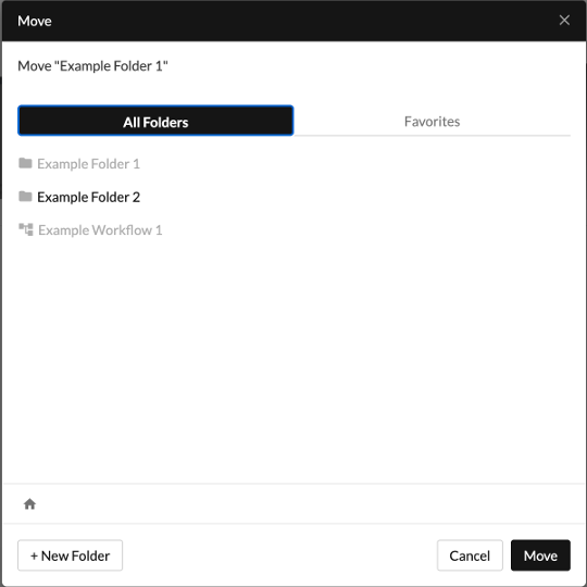 - Once you’ve navigated to the folder you want, click Move in the bottom-right corner of the modal to complete the action.