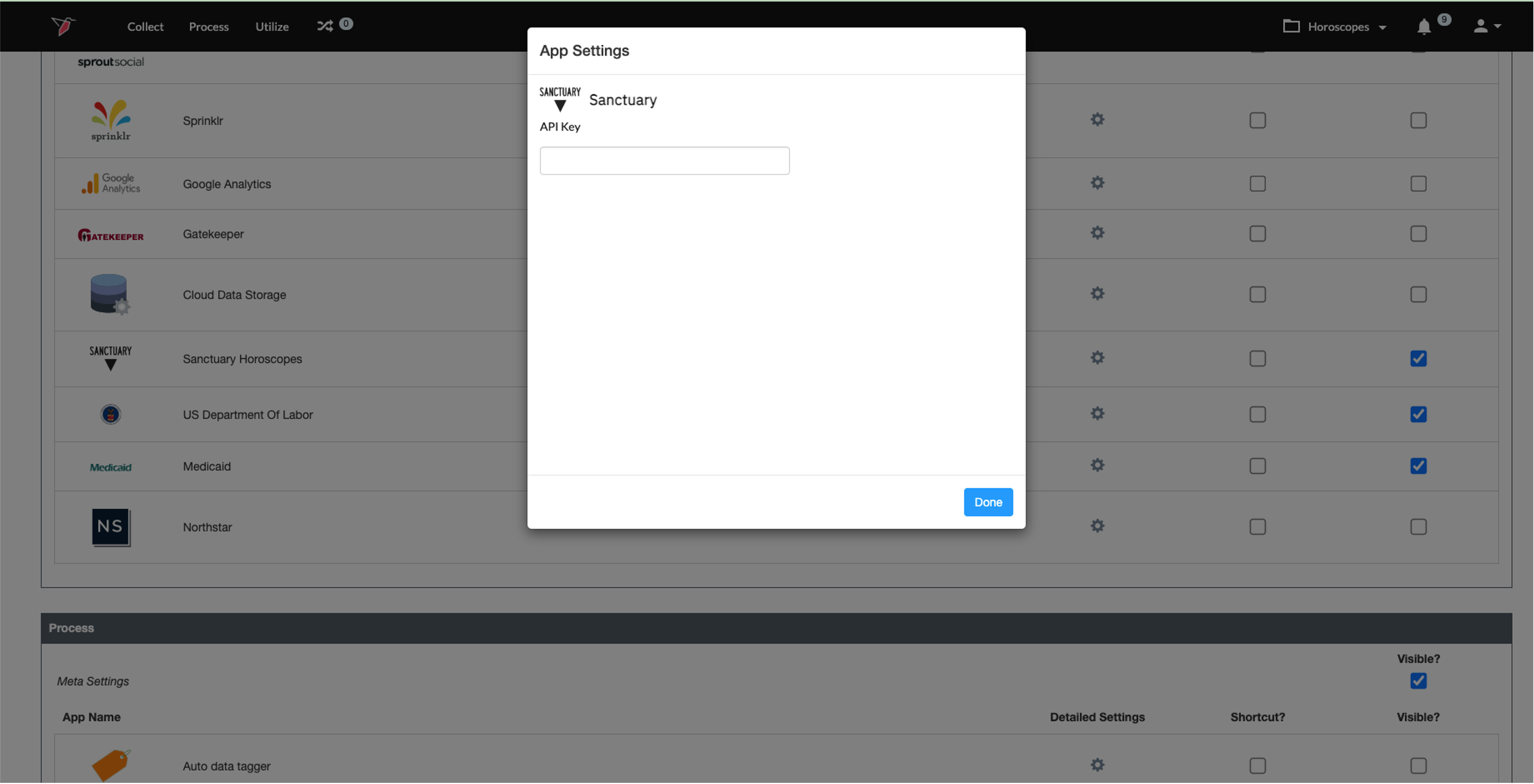 This guide explains how to set up access and collect data from the Sanctuary Horoscopes platform which provides horoscope information. You will need API access enabled on your Sanctuary Horoscopes account to use this collect App