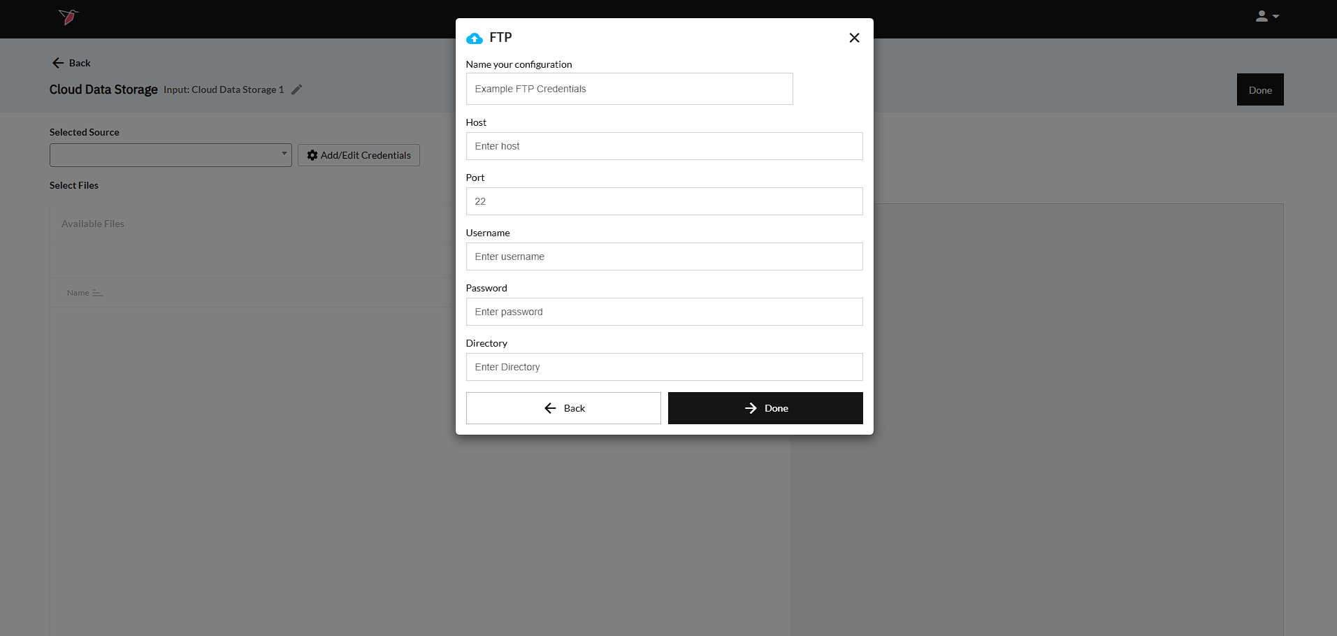 - Input your Host - In order to connect to a FTP, you most provide the "Host" of your FTP server.