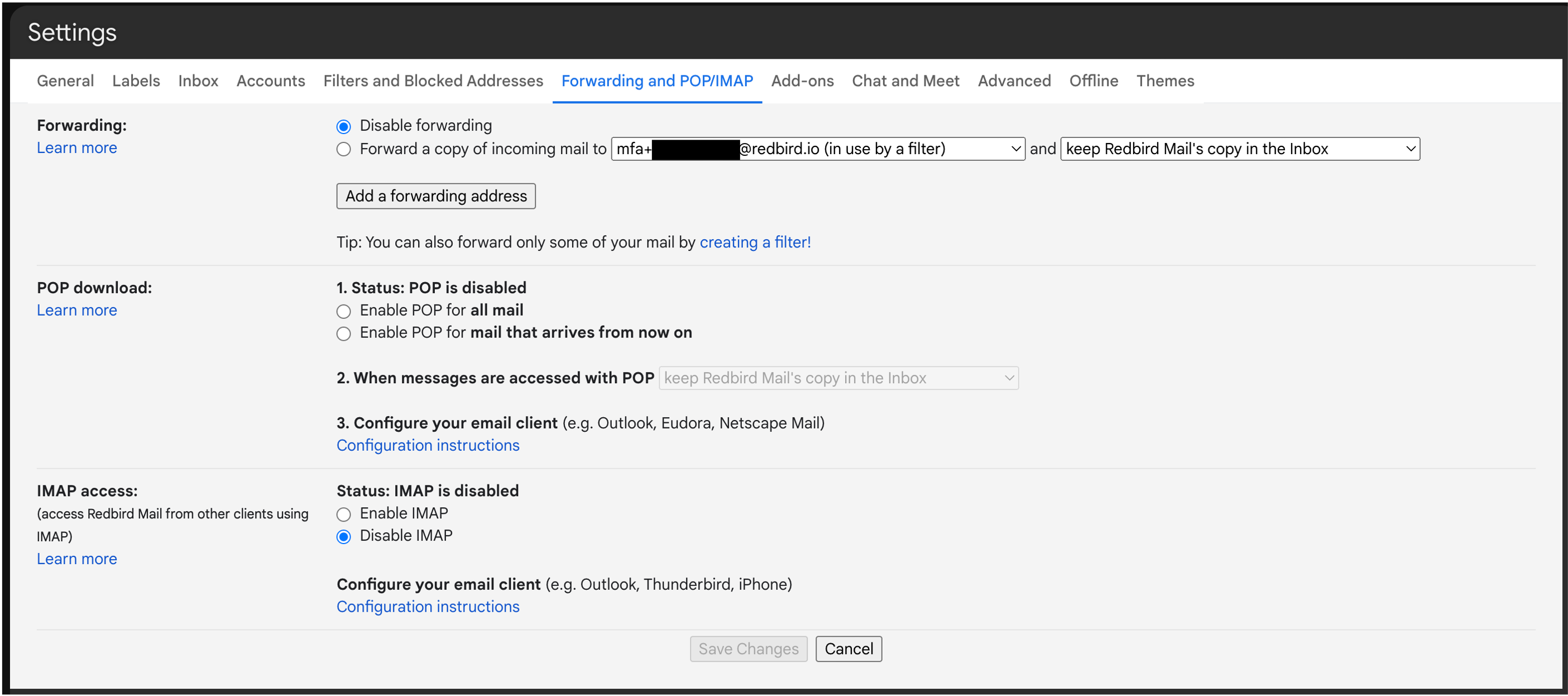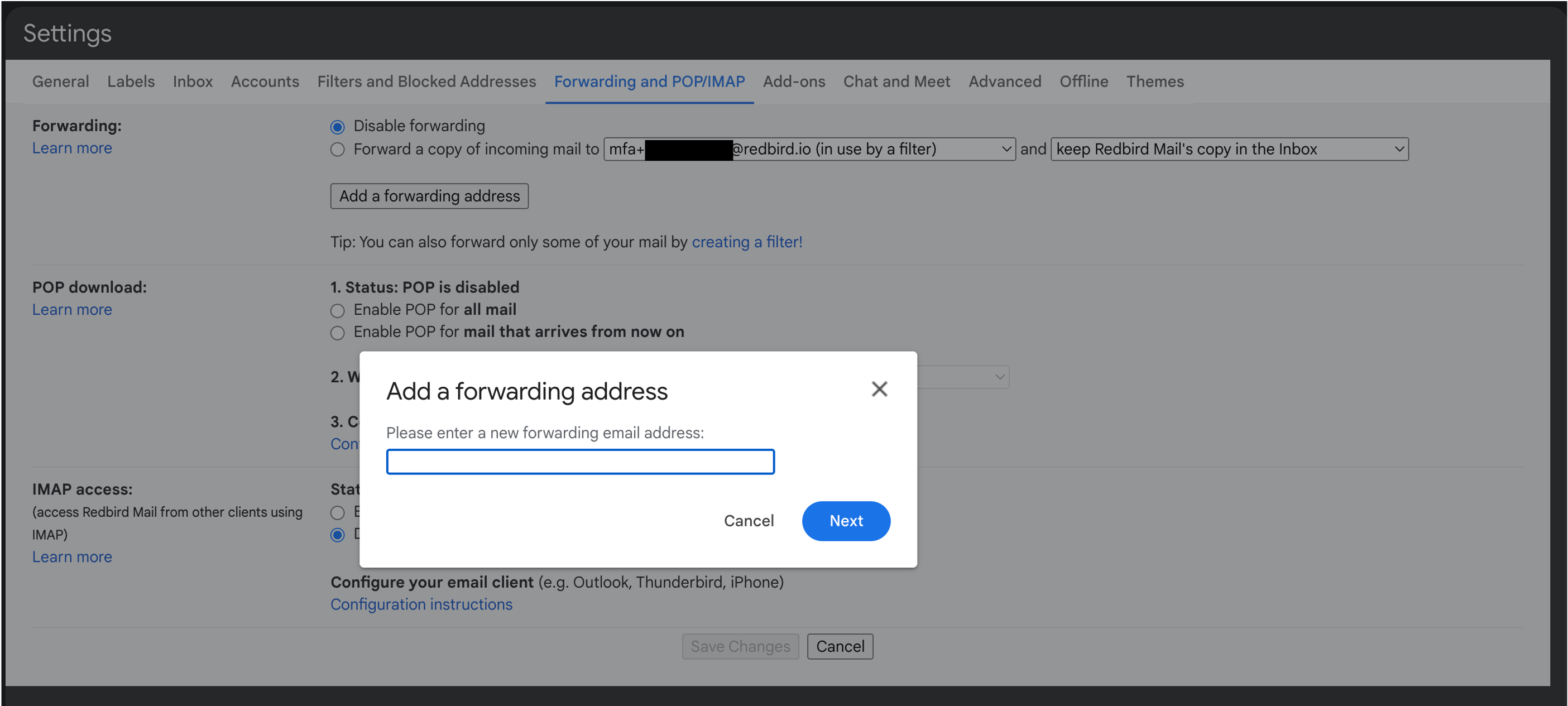 Setting up Forwarding of Emails to Redbird