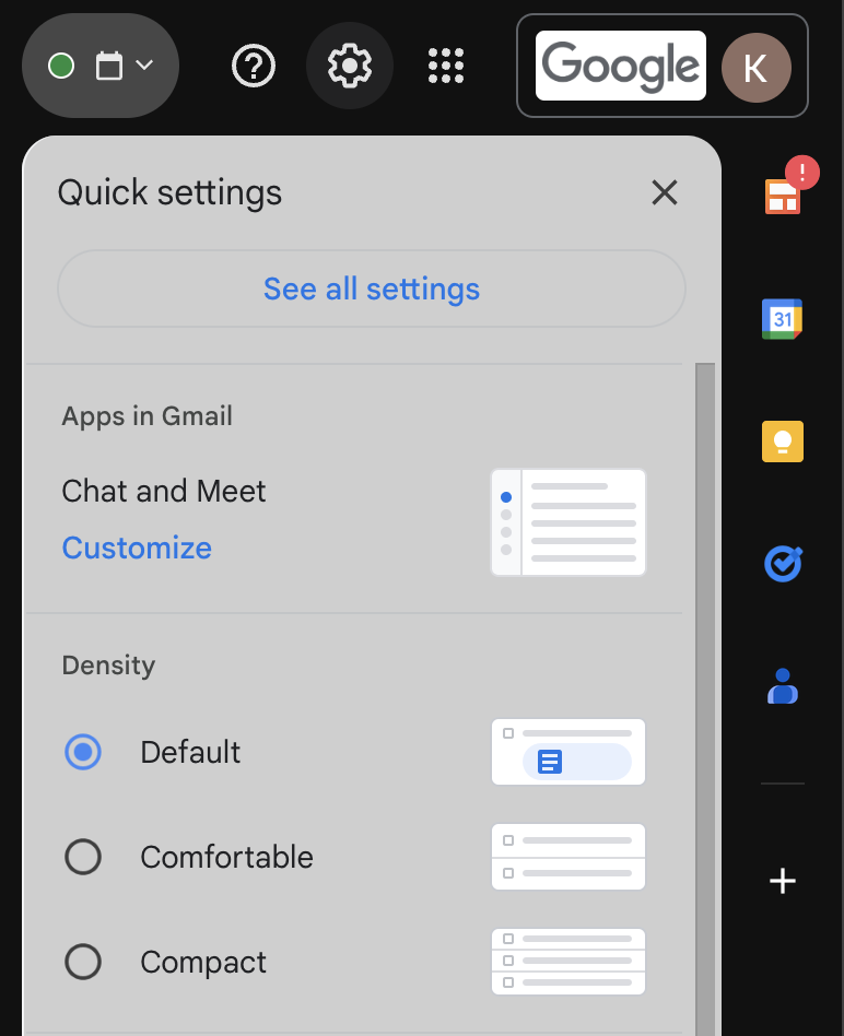 Below, we will go over the flow of adding a forwarding email via Gmail. First, navigate to the Settings Gear icon and then select See all settings.