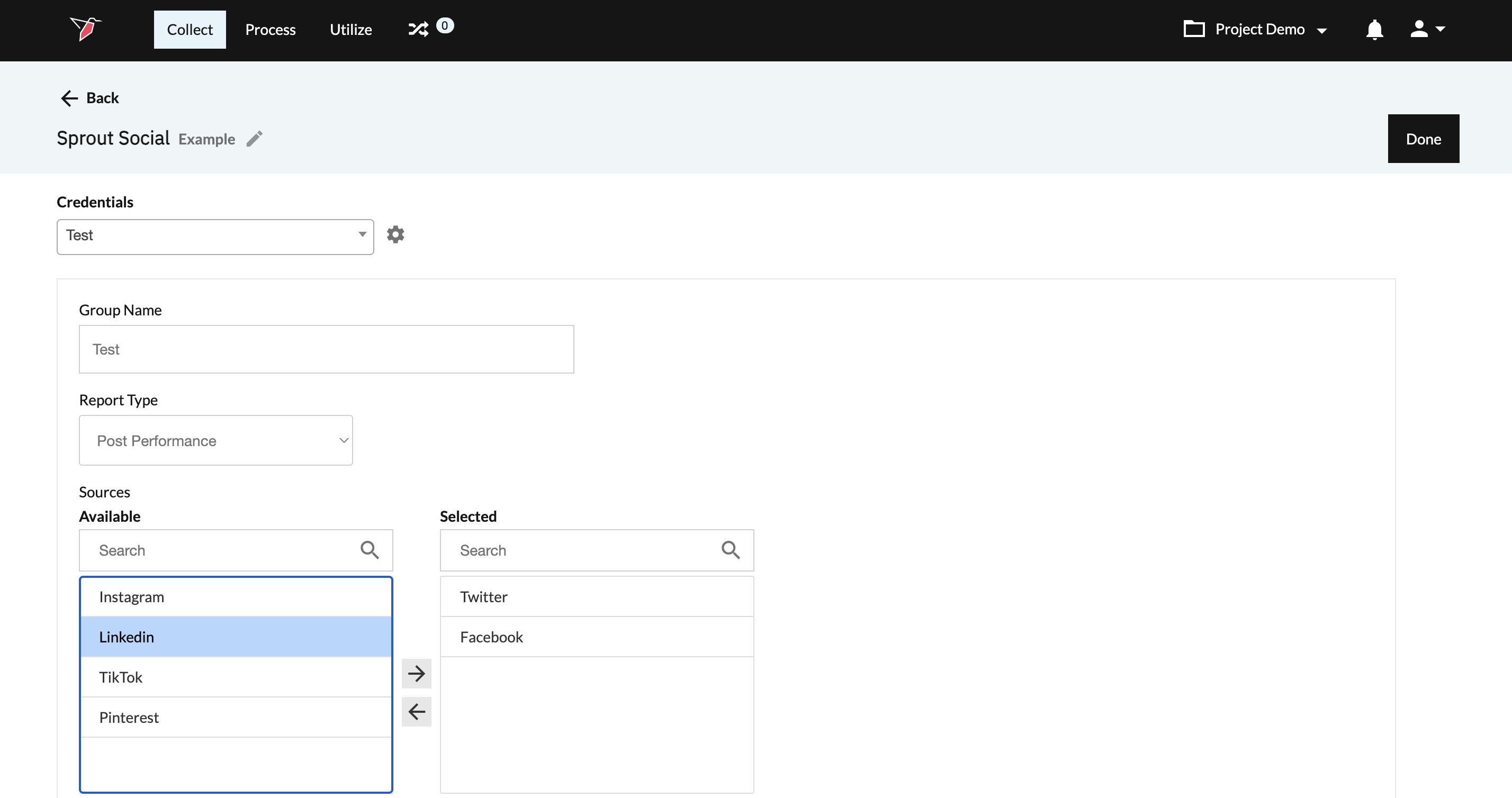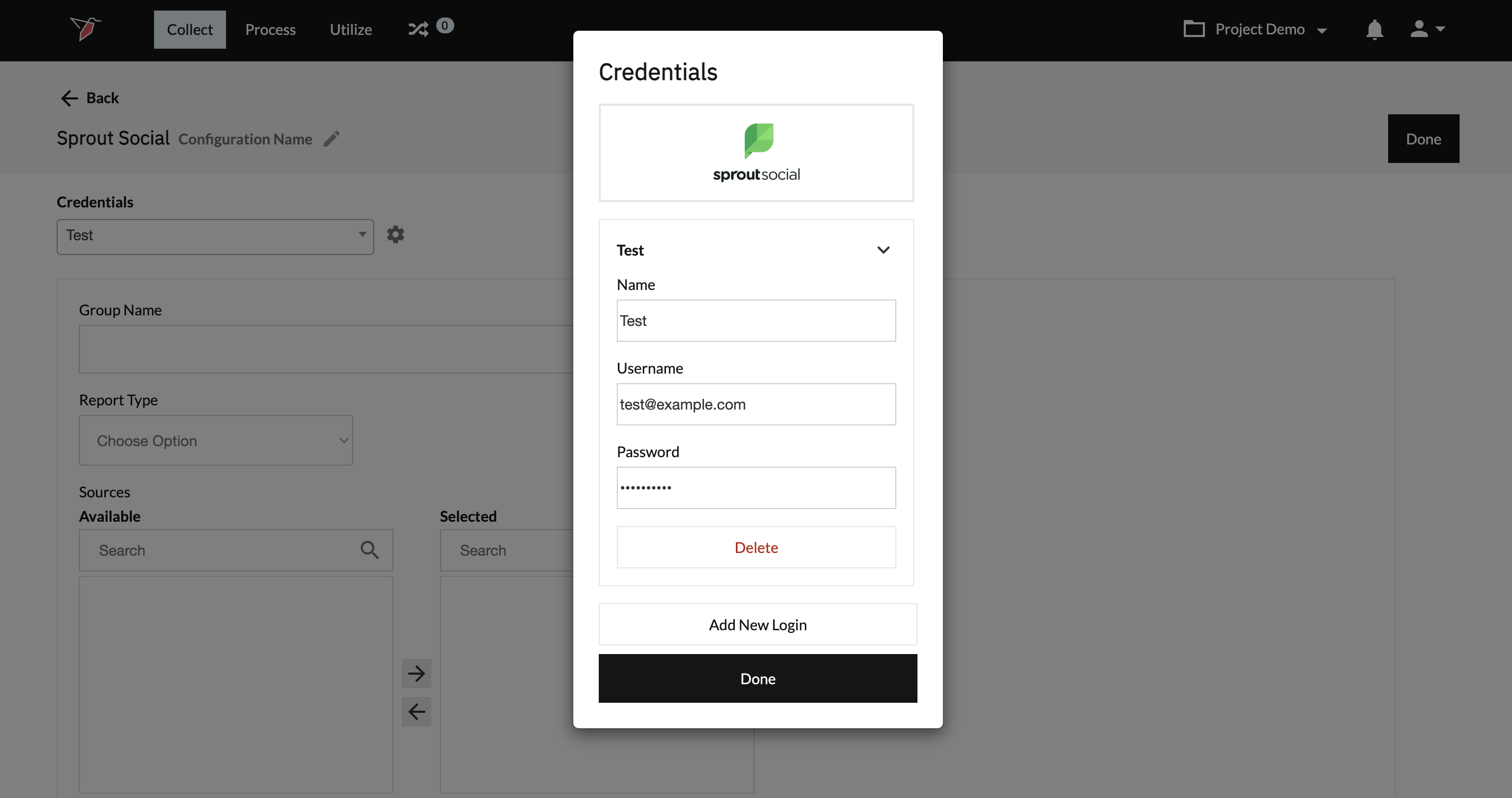 This guide explains how to set up access and collect data from the Sprout Social platform which collects social media analytics. Please ensure that the reports you need are already populated in Sprout Social. Through this collection app, we can pull the data from those existing reports.
