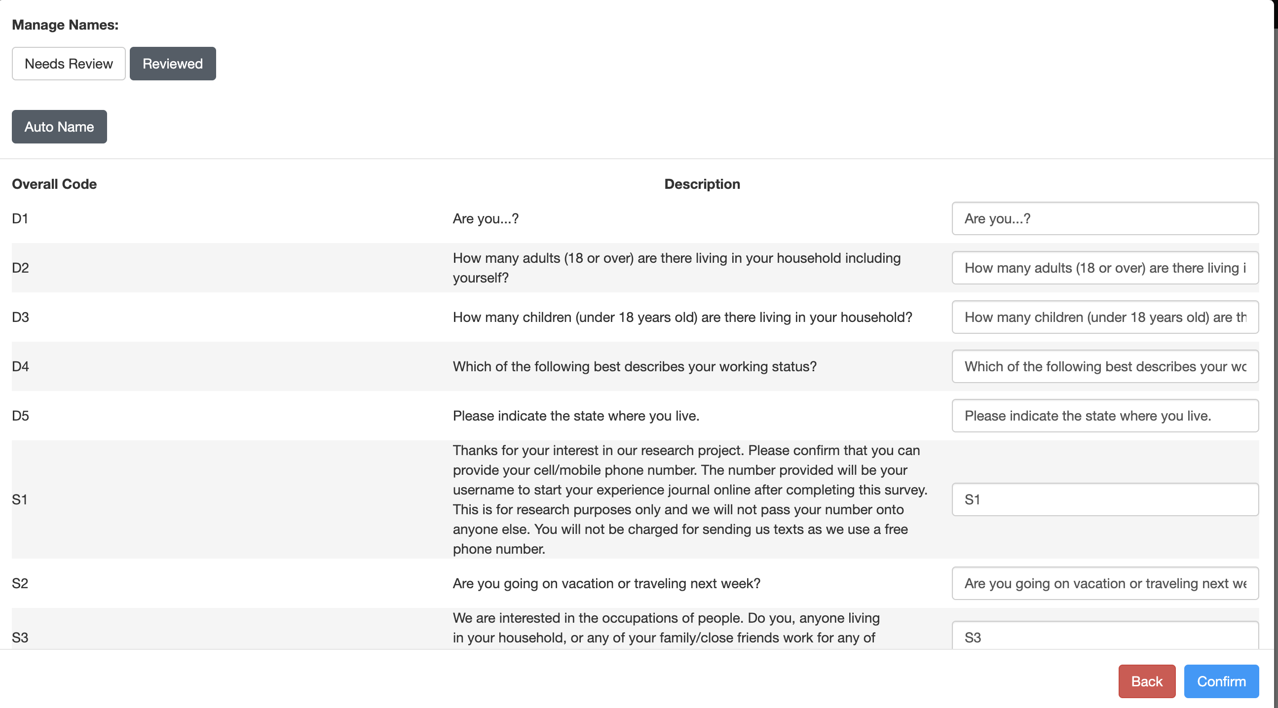 - Manage Names: The Survey Data Collection Application will not allow you to finalize your collection if you have multiple columns with the same name.